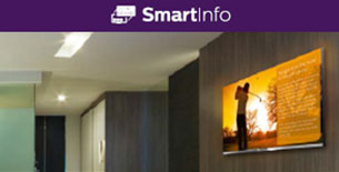SSmartInstall gjør det mulig å forhåndskonfigurere TV-innstillinger og oppgradere TV-er fra ett sted. SmartInfo gjør at du kan dele informasjon, fremheve merkevaren din og promotere tjenester som restauranter eller spa for å generere flere inntekter – uten behov for et separat system.
